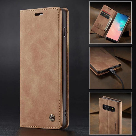 [FREE SHIPPING] CaseMe Retro Leather Case For Samsung S10 Plus Book Style Flip Wallet Magnetic Cover Card Slots Case For Samsung S10 Plus - Brown