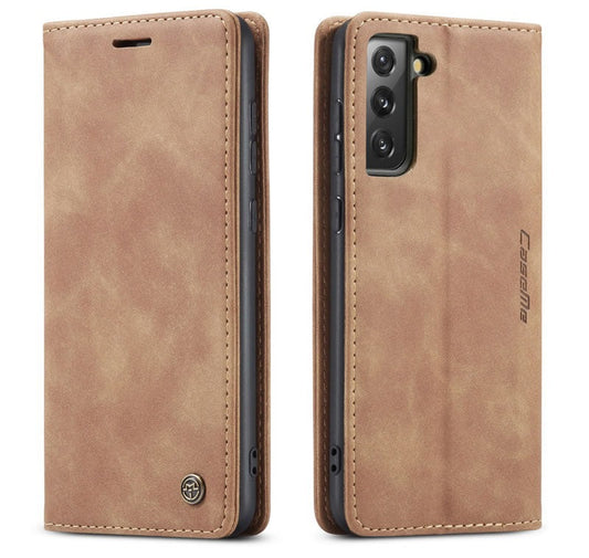 [FREE SHIPPING] CaseMe Retro Leather Case For Samsung S21 Plus Book Style Flip Wallet Magnetic Cover Card Slots Case For Samsung S21 Plus - Brown