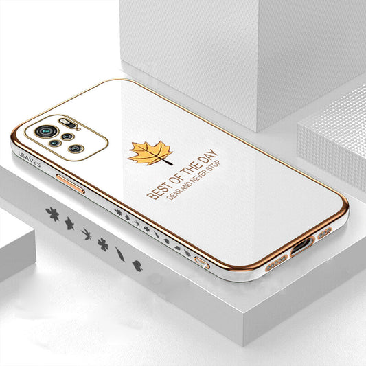 [ FREE SHIPPING] Luxury 6D Plating Case For Redmi Note 10 Maple Leaf Side Pattern Back Cover Soft Silicone Square Phone Cases