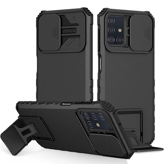 [ FREE SHIPPING] FOR SAMSUNG A51 PHONE CASE HARD SLIDING LENS PROTECT KICKSTAND BACK COVER - BLACK