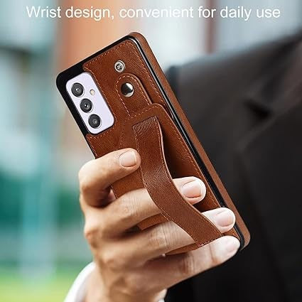 [FREE SHIPPING] BUSINESS CARD SLOT ADJUSTABLE WRIST STRAP CREDIT CARD SLOT SLIM SHOCKPROOF LEATHER CASE FOR SAMSUNG A54