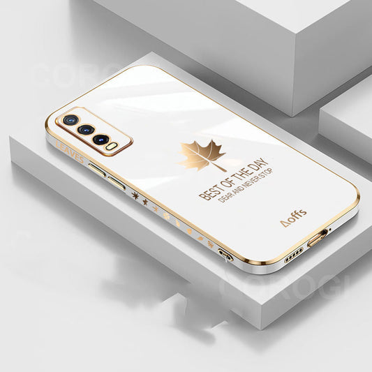 [ FREE SHIPPING] Luxury 6D Plating Case For Vivo Y20 Maple Leaf Side Pattern Back Cover Soft Silicone Square Phone Cases