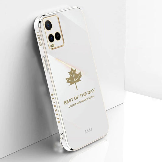 [ FREE SHIPPING] Luxury 6D Plating Case For Vivo Y21 Maple Leaf Side Pattern Back Cover Soft Silicone Square Phone Cases