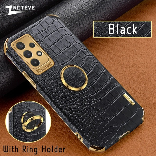 [ FREE SHIPPING] Crocodile Pattern Leather Case For Samsung A32 5G- Black