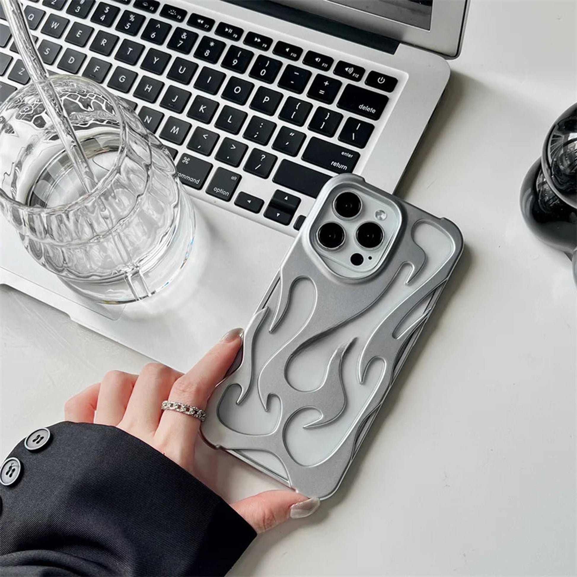 [FREE SHIPPING] FLAME SHAPED HOLLOWED FROSTED PHONE COVER IPHONE 14 PRO MAX