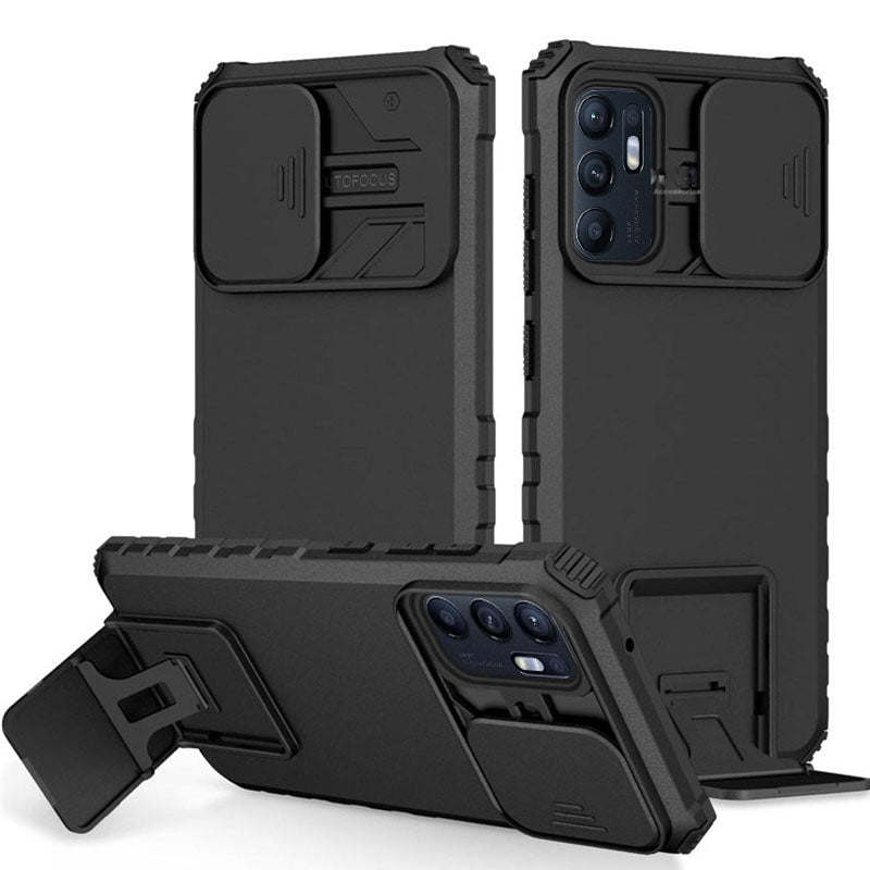 [ FREE SHIPPING] FOR OPPO RENO 6 PHONE CASE HARD SLIDING LENS PROTECT KICKSTAND BACK COVER - BLACK