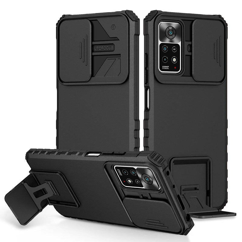 [ FREE SHIPPING] FOR REDMI NOTE 11 PRO PHONE CASE HARD SLIDING LENS PROTECT KICKSTAND BACK COVER - BLACK