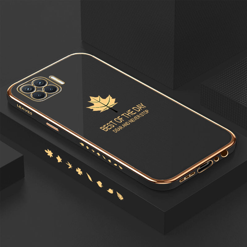 [ FREE SHIPPING] Luxury 6D Plating Case For Oppo Reno F17 Maple Leaf Side Pattern Back Cover Soft Silicone Square Phone Cases - Black