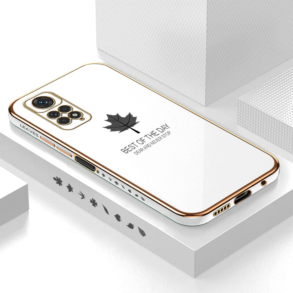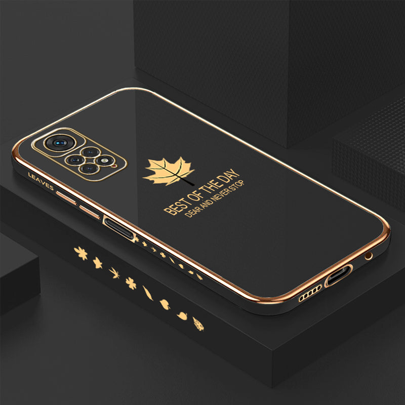[ FREE SHIPPING] Luxury 6D Plating Case for Redmi Note 11 Maple Leaf Side Pattern Back Cover Soft Silicone Square Phone Cases