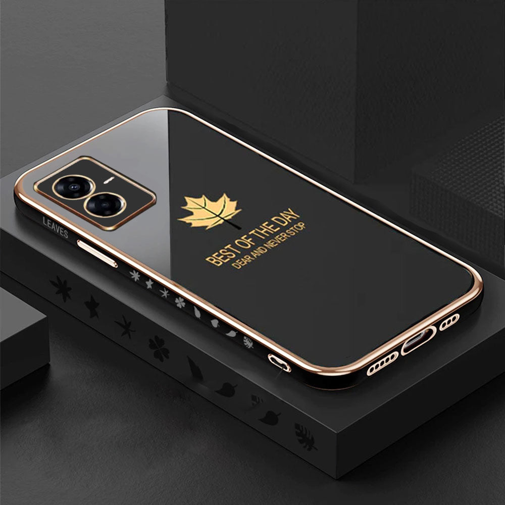 [ FREE SHIPPING] Luxury 6D Plating Case For Vivo Y22/ Y22s Maple Leaf Side Pattern Back Cover Soft Silicone Square Phone Cases