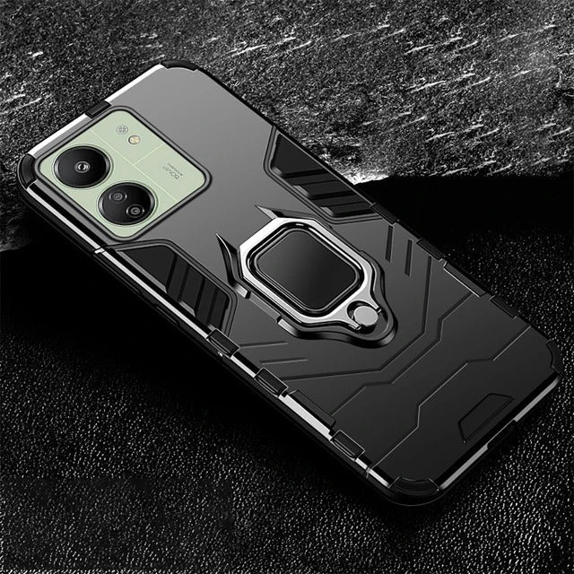 [ FREE SHIPPING] Redmi 13C ,ARMOR SHOCKPROOF STAND HOLDER COVER - BLACK
