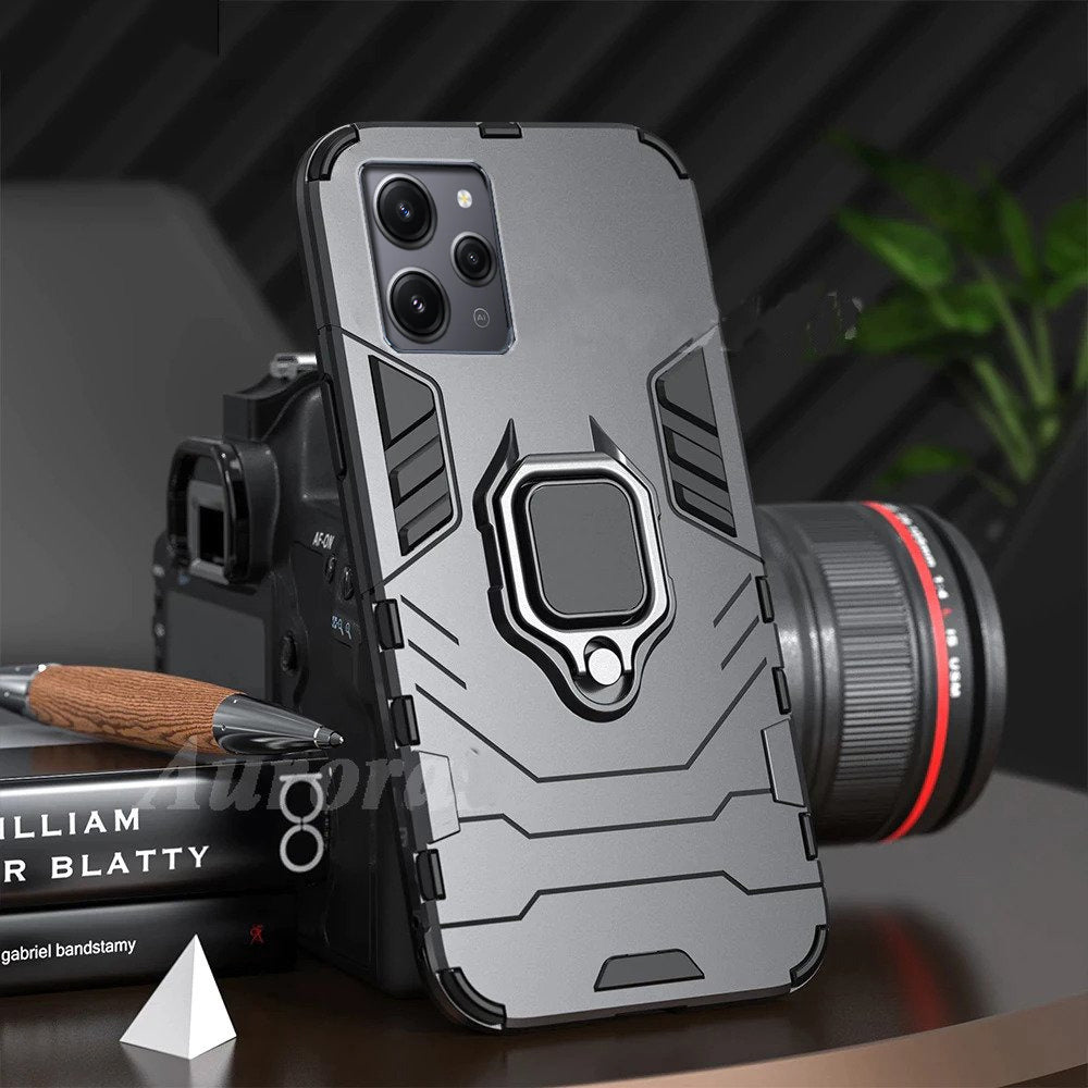 [ FREE SHIPPING] Redmi Note 12 Armor Shockproof Stand Holder Cover - Black