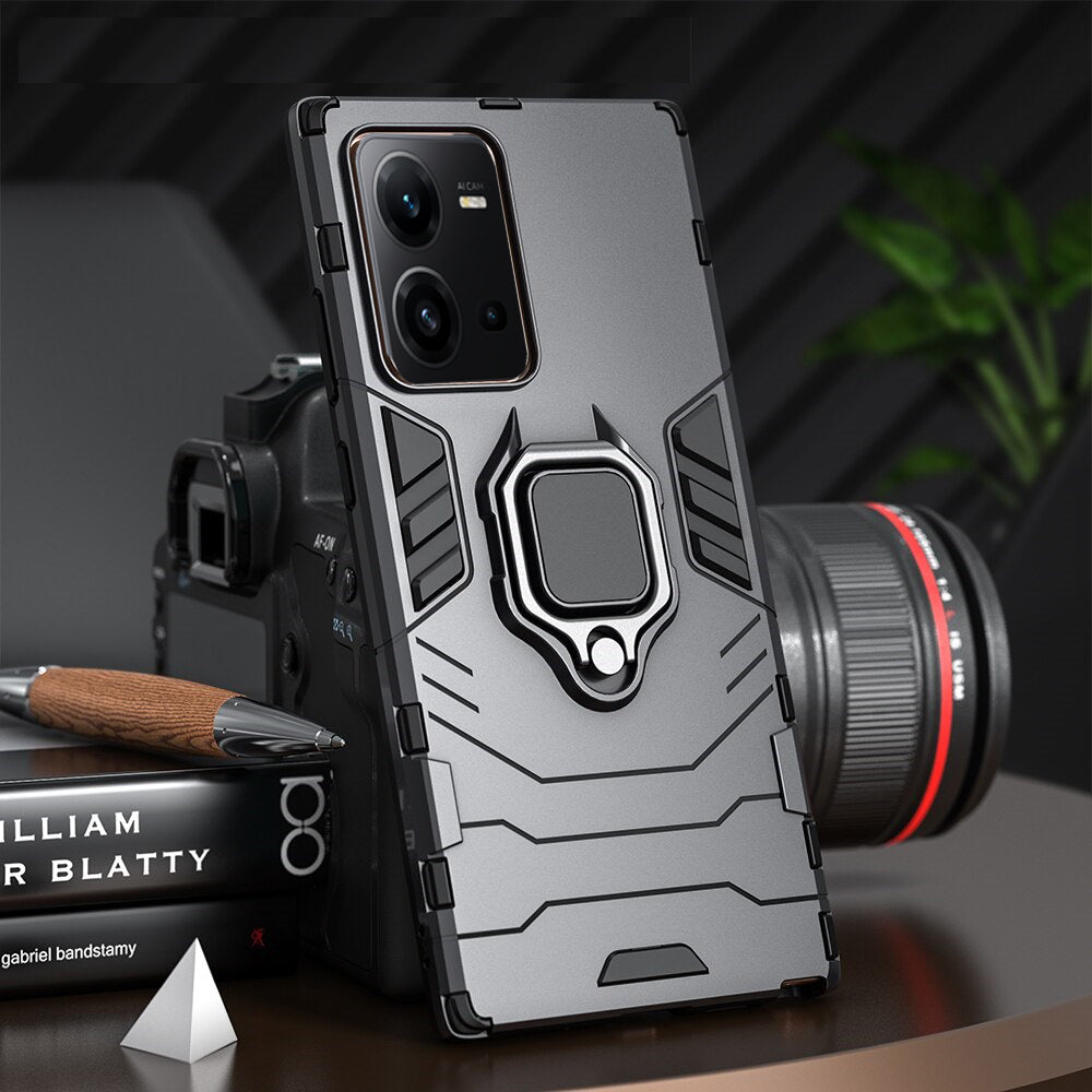 [ FREE SHIPPING] Vivo V25,Armor Shockproof Stand Holder Cover - Black